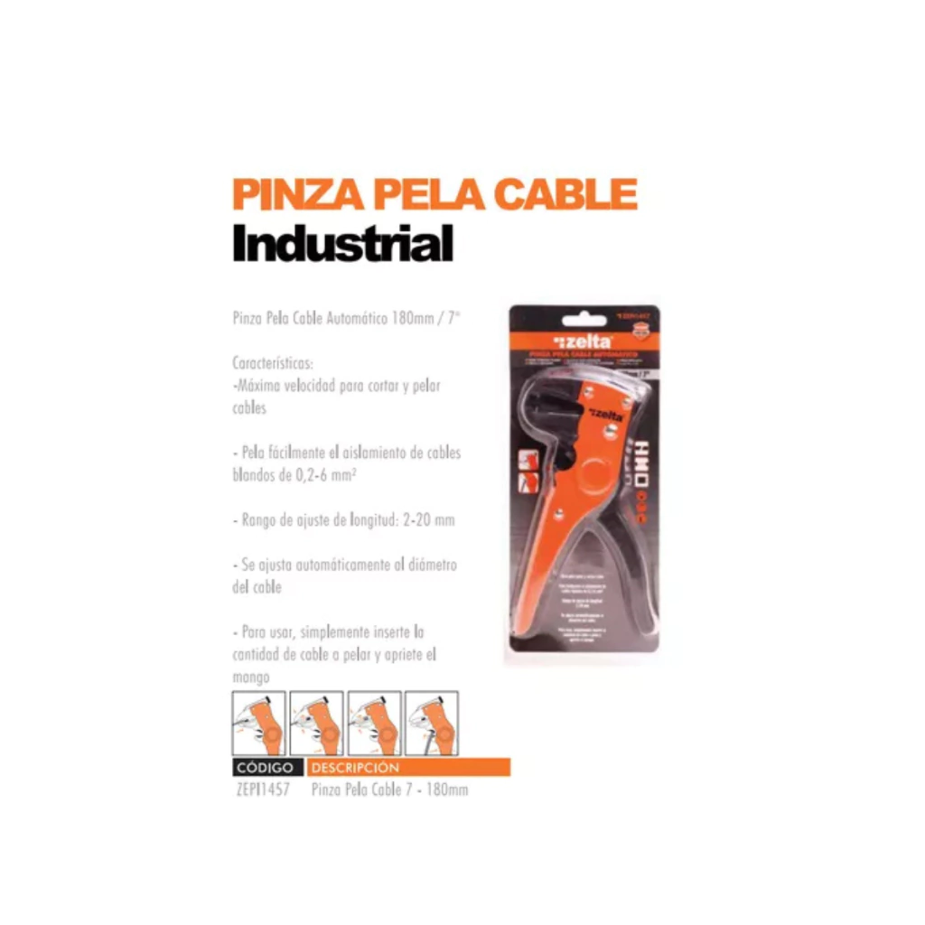 Pinza Pelacable Automática 180mm Profesional Zelta